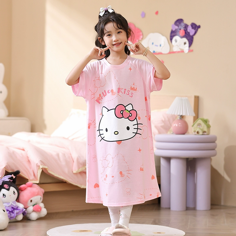 Cute cinnamon dog children’s pure cotton pajamas for girls and older children