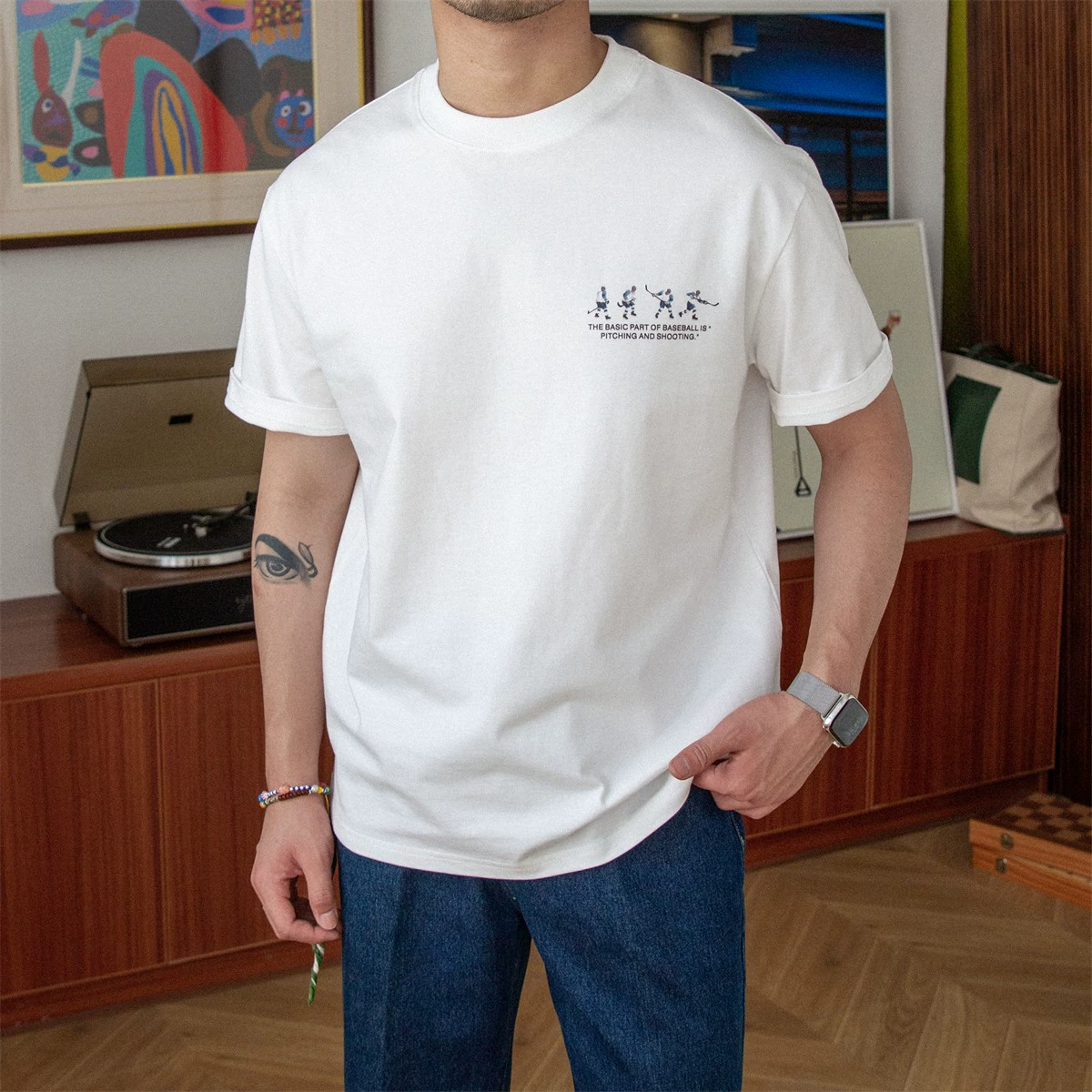 Mr. Lu San made a homemade petty bourgeois summer pure cotton round neck T-shirt 270G retro versatile short-sleeved T-shirt trendy and fashionable men