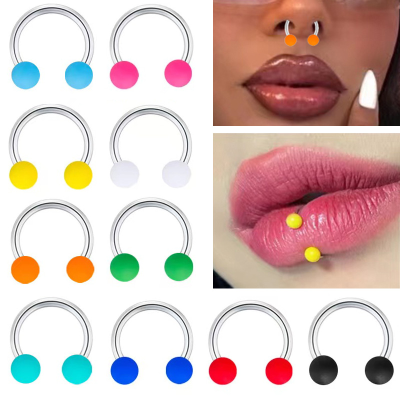 Acrylic frosted lip ring horseshoe ring stainless steel C- bar piercing jewelry candy color rubber ball nose ring