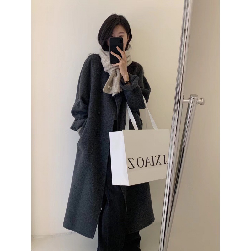 2024 new high-end small lazy style mid-length Hepburn style wool woolen overcoat coat