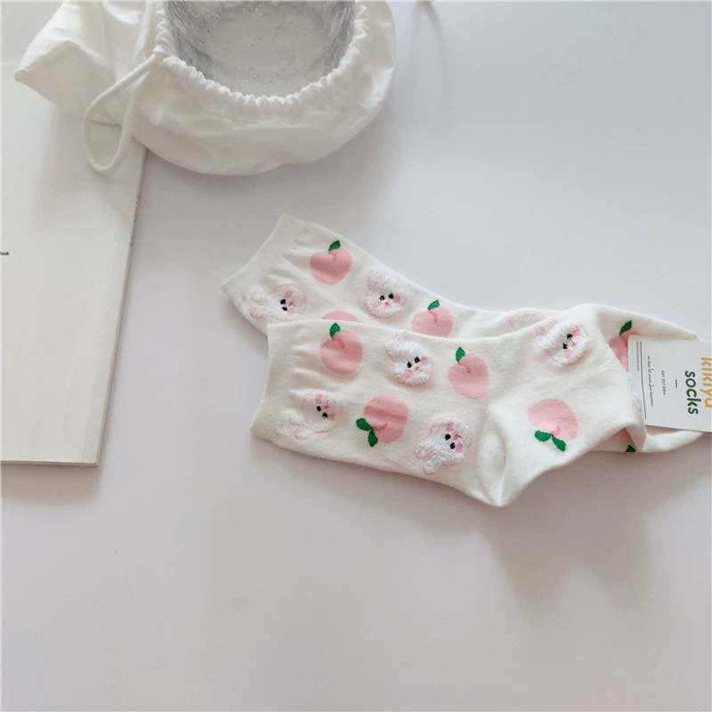 kikiyasacks spring, autumn and winter sweet cartoon fruit cute women’s mid-tube cotton socks