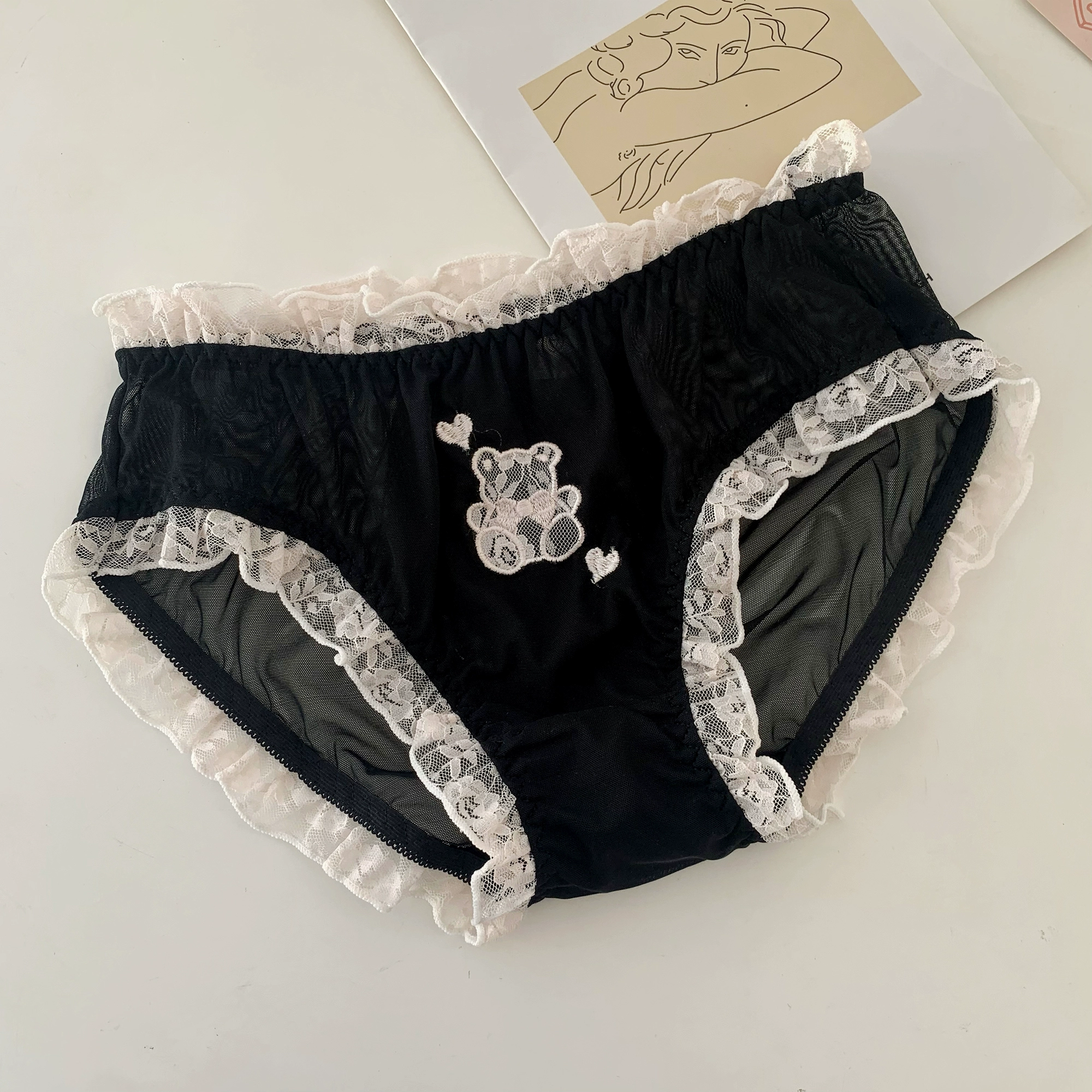 Cute bear embroidered Japanese girls thin underwear