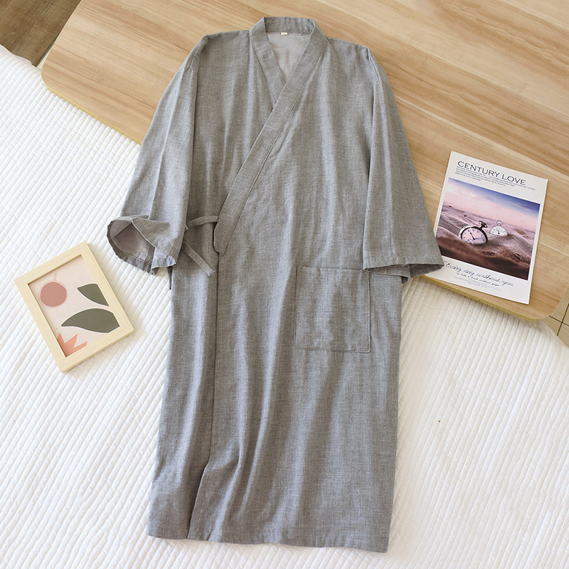 Japanese style cotton gauze spring/summer thin kimono nightgown men’s loose plus size pajamas loose bathrobe sweat steaming clothes