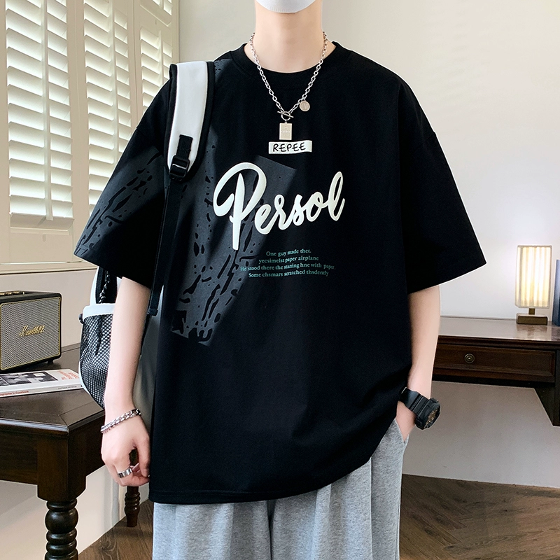 Youth summer pure cotton short-sleeved T-shirt for men and children in summer 2024 new style handsome top for junior high school and high school students