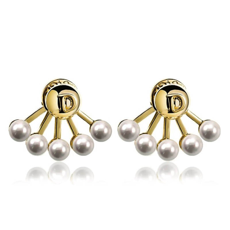 Dijia’s new earrings, temperament, CD letter pearl fan earrings, high-end retro old French flower earrings