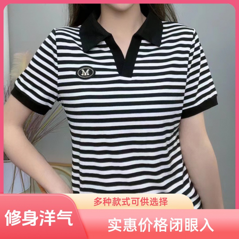 Summer New Polo Shirt Women’s Fashion Lapel Short-sleeved T-shirt Slim-fit Stylish Small Shirt Summer All-match Slimming Women’s Clothing