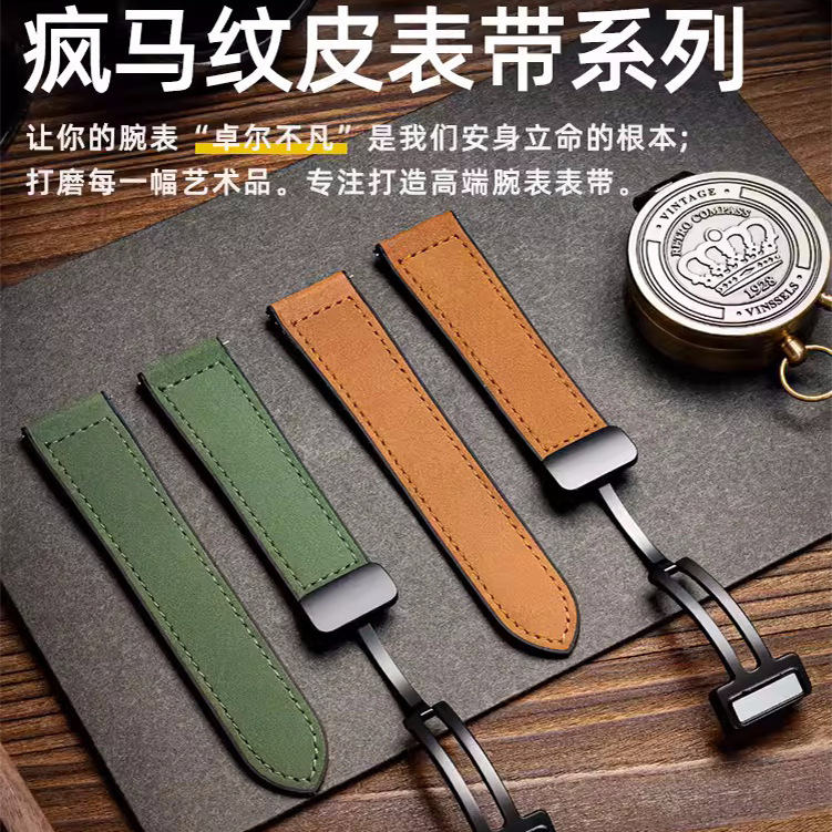 for apple applewatchs9 watch strap genuine leather crazy horse pattern folding magnetic buckle huawei gt4 watch strap