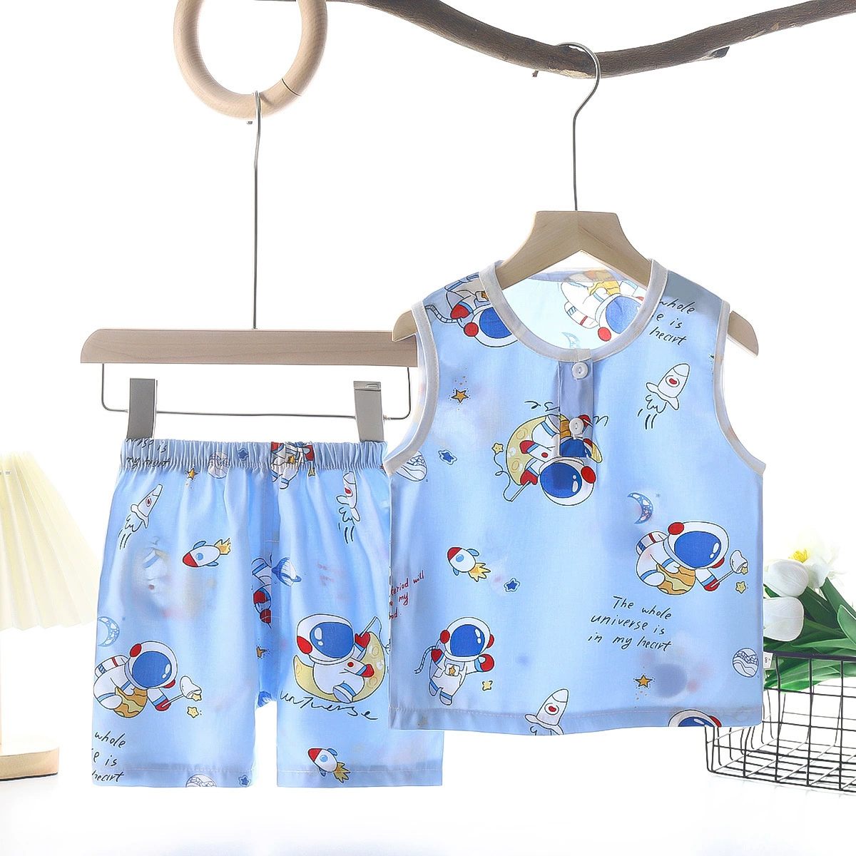 Baby summer suit boy summer cotton silk baby boy baby cotton silk artificial cotton thin vest shorts two-piece set