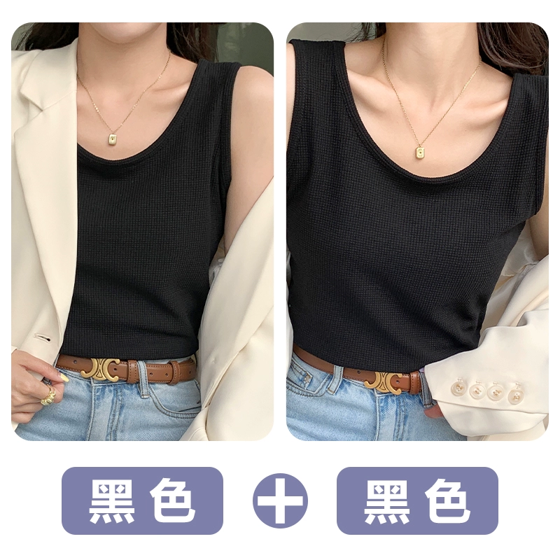 H family European and American clothing sweet and gentle knitted fake two-piece strappy square neck short-sleeved T-shirt slimming solid color top summer