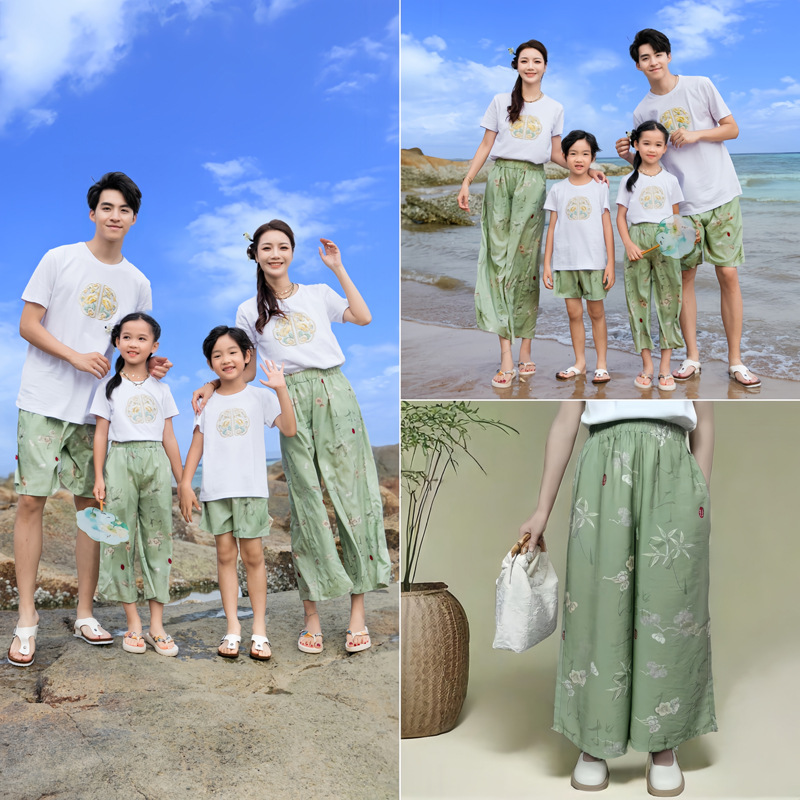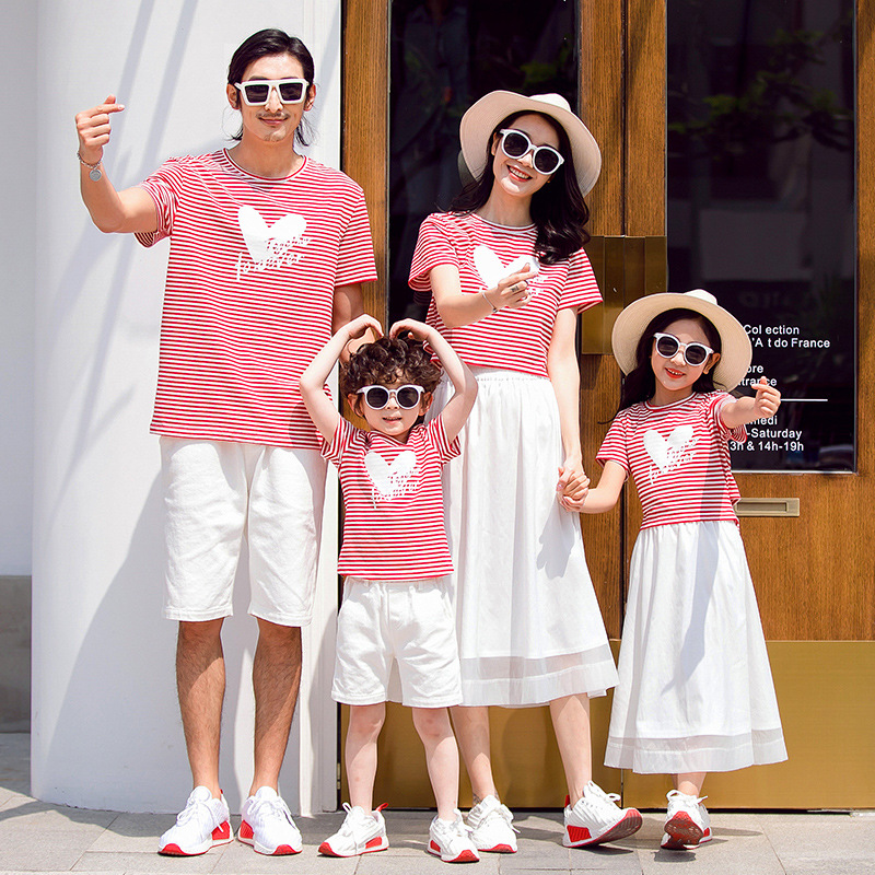 Parent-child Summer 2023 New Fashionable Internet-famous Mother and Women’s Dresses Foreign-style Mother and Child Family Three or Four Short-sleeved T-shirt Set