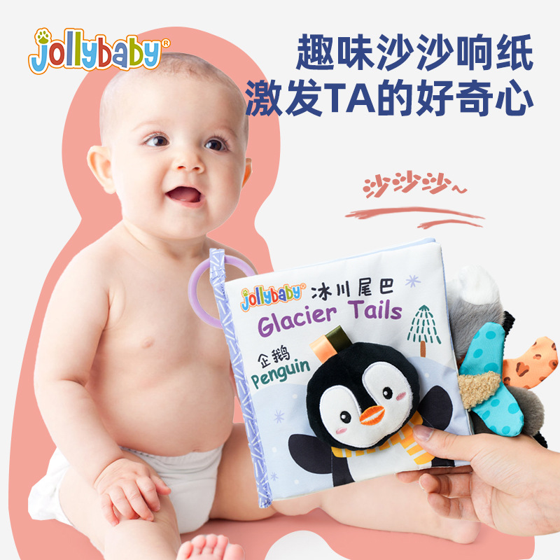 Jollybaby baby cloth book three-dimensional animal tail book 0-1 year old baby tearable toy early education cloth book