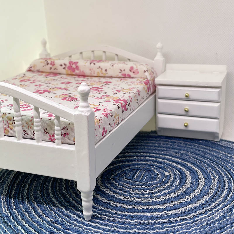 1:12 DOLLHOUSE doll house mini furniture miniature bedroom scene floral double bed bedside table