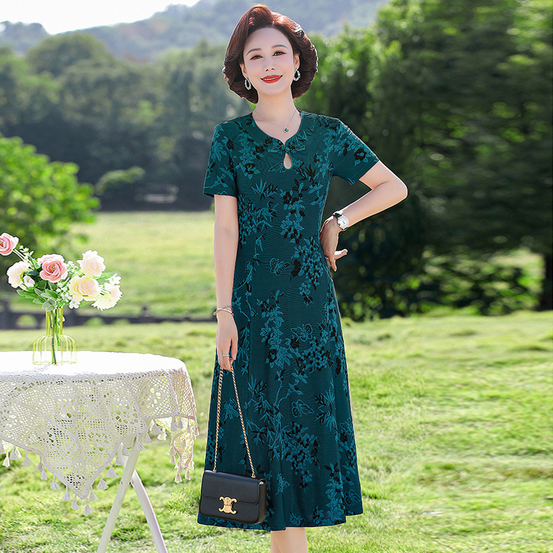 Mother’s Summer Dress dress Middle-aged and Elderly Women’s Dress Your Lady’s Elegant Cheongsam 40-year-old 50 Wedding Dress Short-sleeved Dress