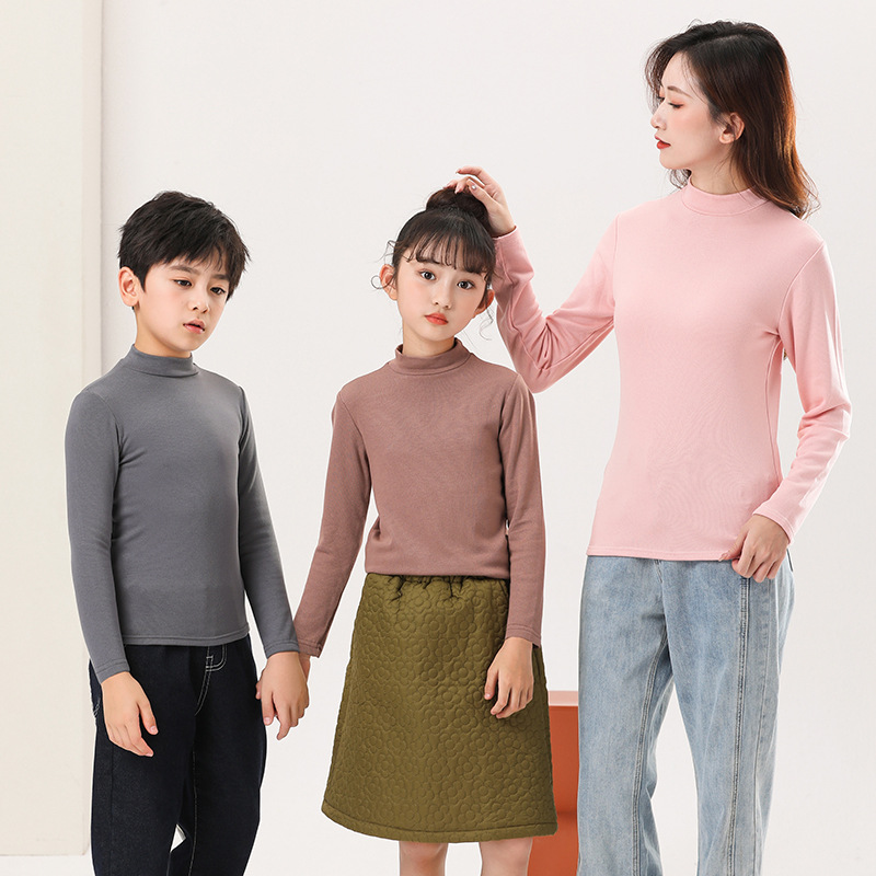 Autumn and Winter parent-child soft elastic plain half turtleneck bottoming shirt medium and large boys and girls pit brushed inner Long Sleeve T
