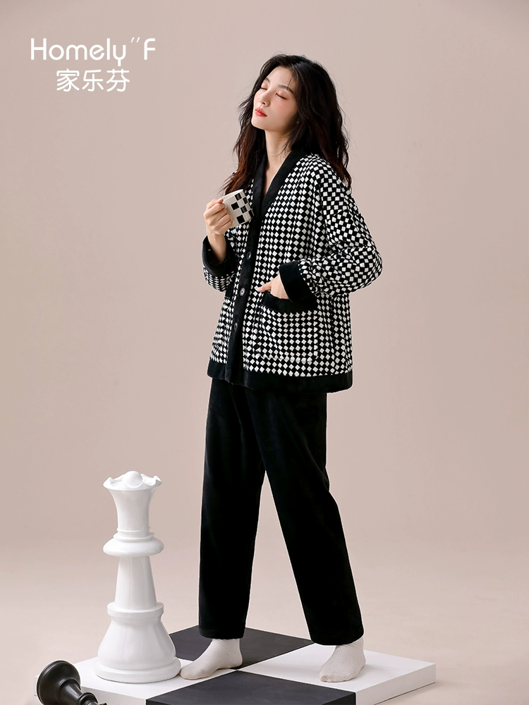 Carrefen pajamas women’s autumn and winter style winter flannel plus velvet thickened warm coral velvet home wear women’s winter