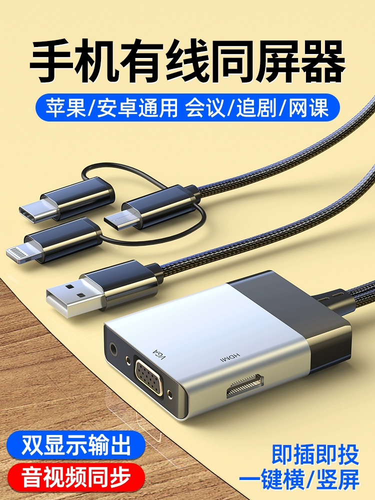Mobile phone connected to TV same-screen cable typec to hdmi interface projection cable VGA HD converter projector computer monitor tpc wired screen projection suitable for Apple ipad Android universal