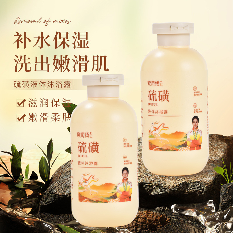 Ouniyang sulfur anti-mite shower gel anti-acne anti-mite liquid soap wash and care cleaning shower gel wholesale hair generation