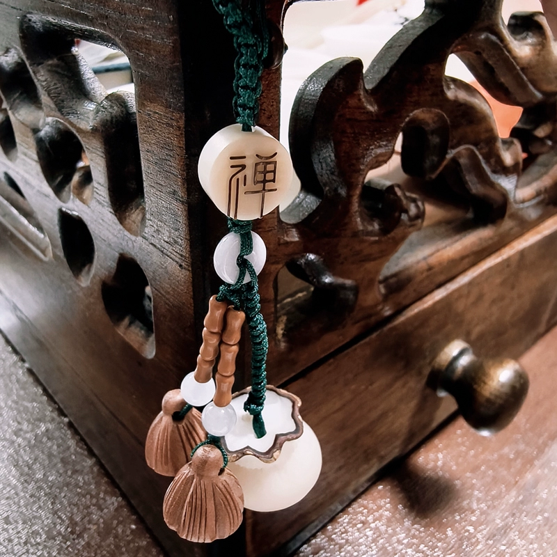 Handmade weaving natural Bodhi carved white jade lotus lotus refined back Yun Lotus pendant accessories DIY key pendant