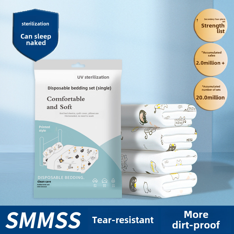 Disposable printed bed sheet quilt cover thickened non-woven four-piece set single double suit travel portable independent packaging