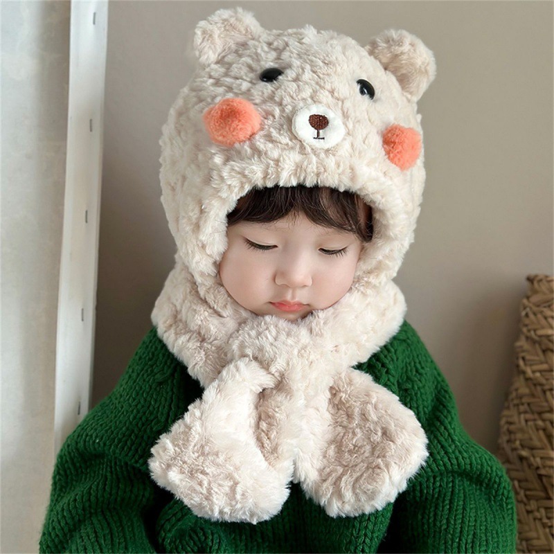 Scarf children’s baby winter hat one-piece two-piece warm fleece-lined earmuffs Boys and Girls cute plush hat