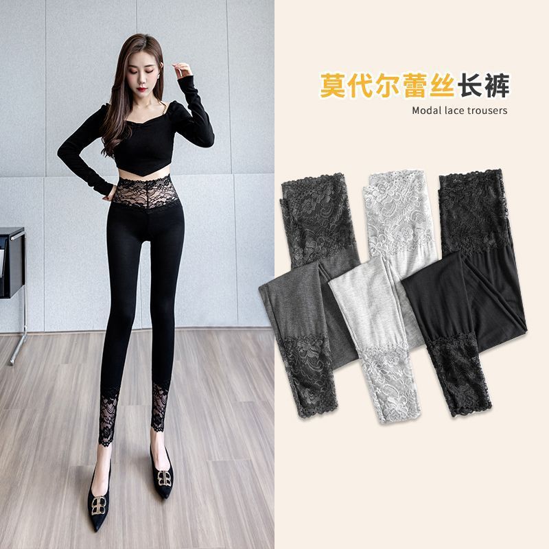 Lace-Trimmed Barbie Pants Women’s Modal High Waist New Modal Ultra-Thin Body Sexy Line Pants