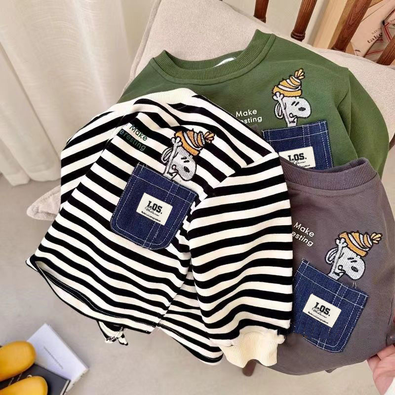 Korean Style Boys Sweater 2023 Spring New Children’s Pocket Embroidered Round Neck Casual All-match Top 0193A003