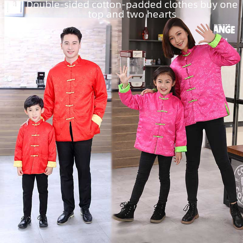 Jin Dian Children’s Tang Suit Two-sided Wearing Cotton Warm Parent-child Double-sided Tang Suit Happy New Year Hanfu New Year Suit