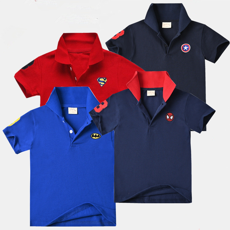 Boys’ summer lapel polo shirt short sleeve breathable T-shirt Superman casual half sleeve top baby cartoon Embroidery Fashion t