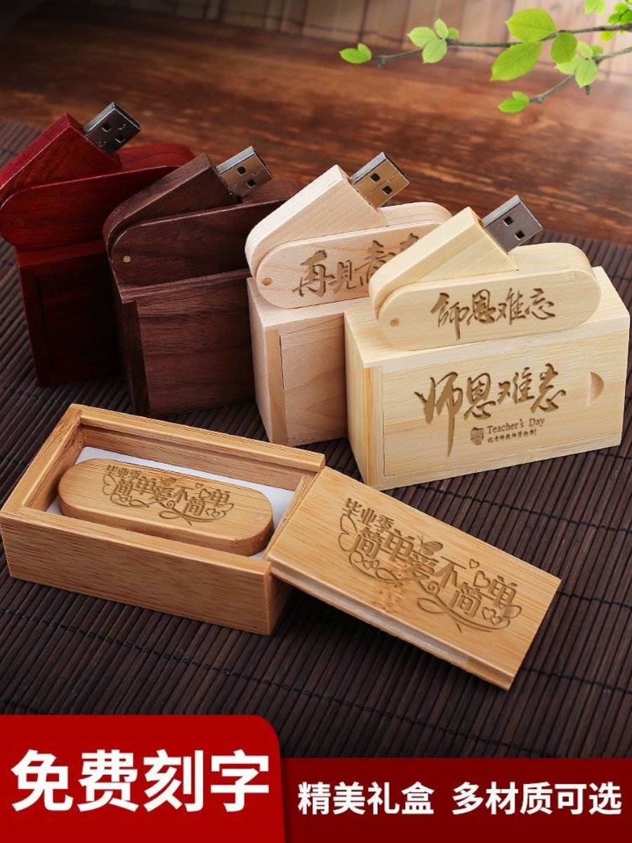 Wooden rotating USB flash drive creative bamboo student birthday graduation gift advertising gift USB flash drive laser engraving logo
