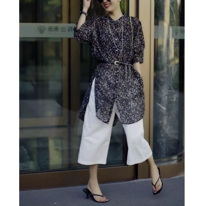 23369 Big Aimei Yiyuan 2023 Summer New Fashion Chiffon Long Shirt Casual Straight Pants Slimming Women