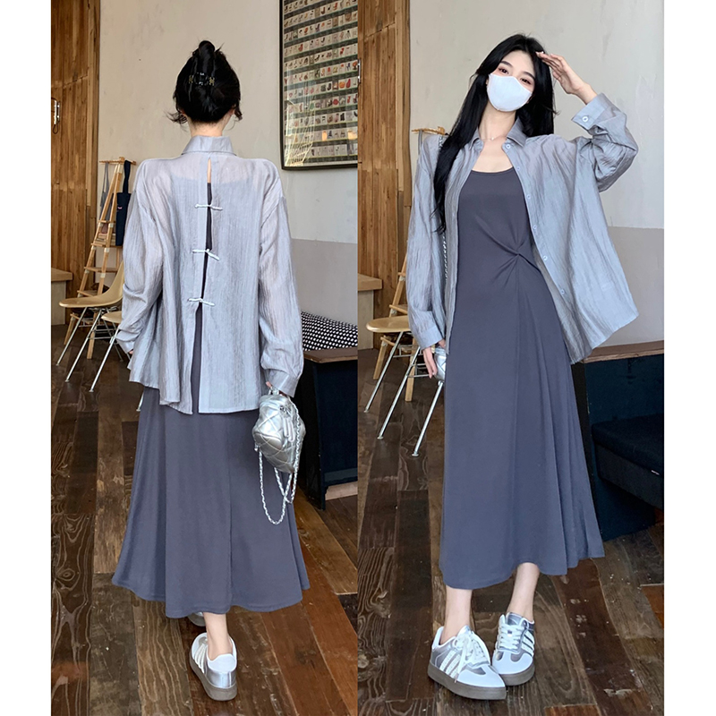 Loose shirt mid-length casual fairy-spirited Zen suit buckle