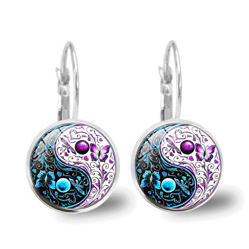 Cross-border Accessories Yin Yang Tai Chi Butterfly Time Gem Earrings Fashion Silver French Vintage Earrings Wholesale