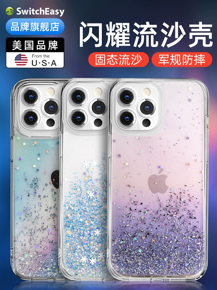 switcheasy is suitable for the 2022 new Apple 14 mobile phone case iphone14promax military standard anti-fall quicksand protective cover full package 14max transparent gradient soft and hard lanyard Xiaohongshu