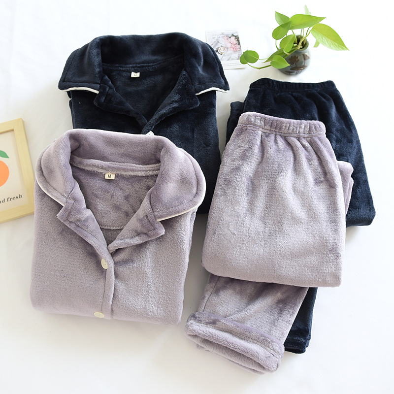 Coral Velvet Couple Pajamas Women’s Winter Thickened fleece-lined Home Clothes Long Sleeve Solid Color Men’s Warm Flannel suit