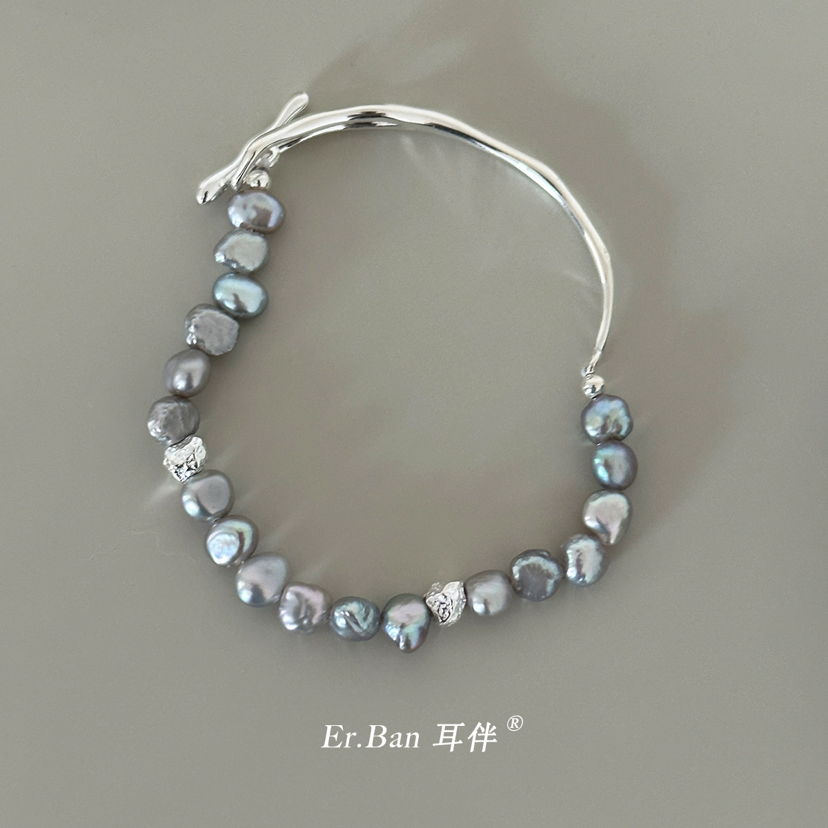 925 sterling silver baroque freshwater gray pearl bracelet female niche light luxury high-end bracelet girlfriend gift