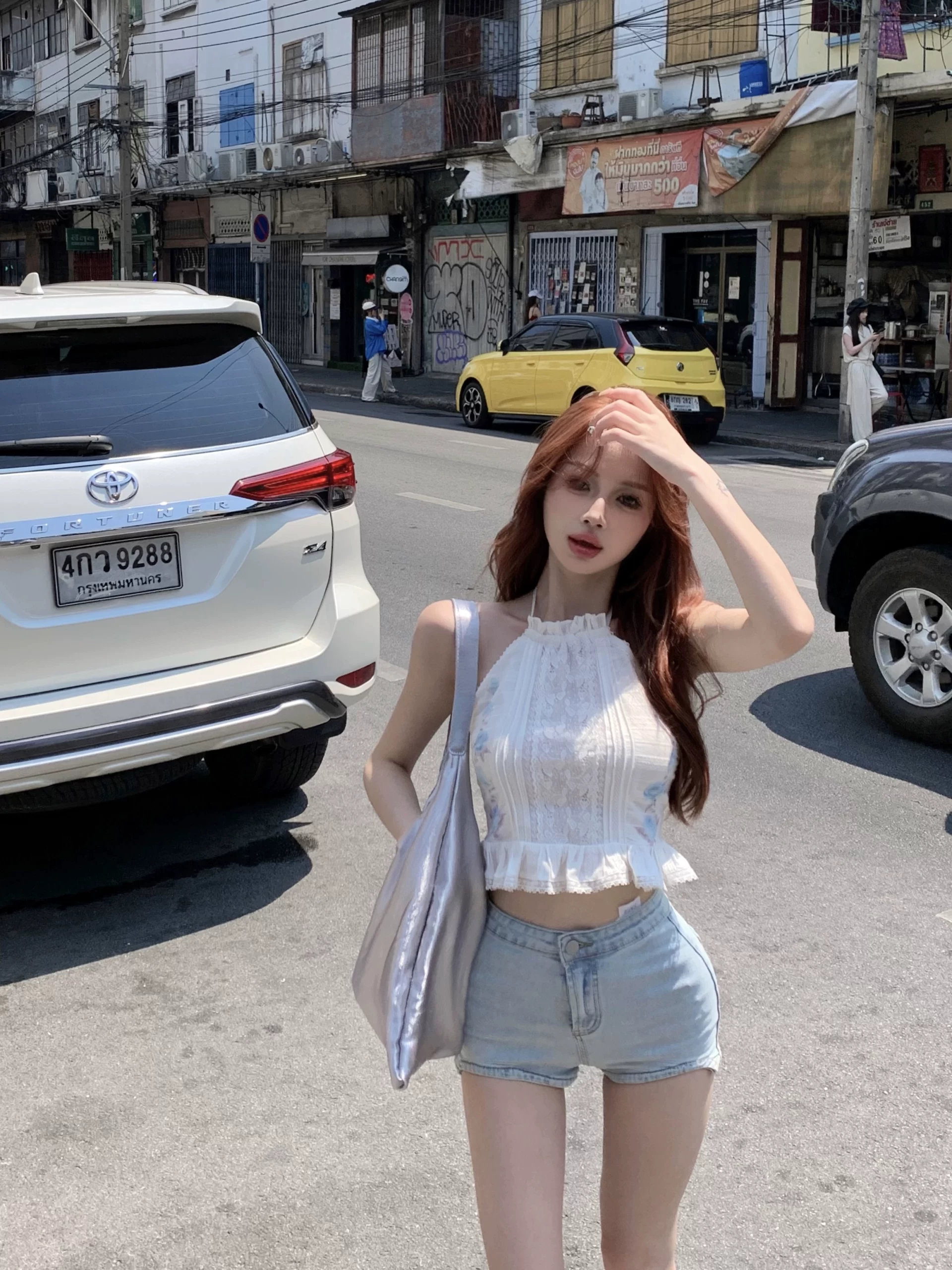 Printed Slim Fit Ruffle Outer Top Halter Neck Strap