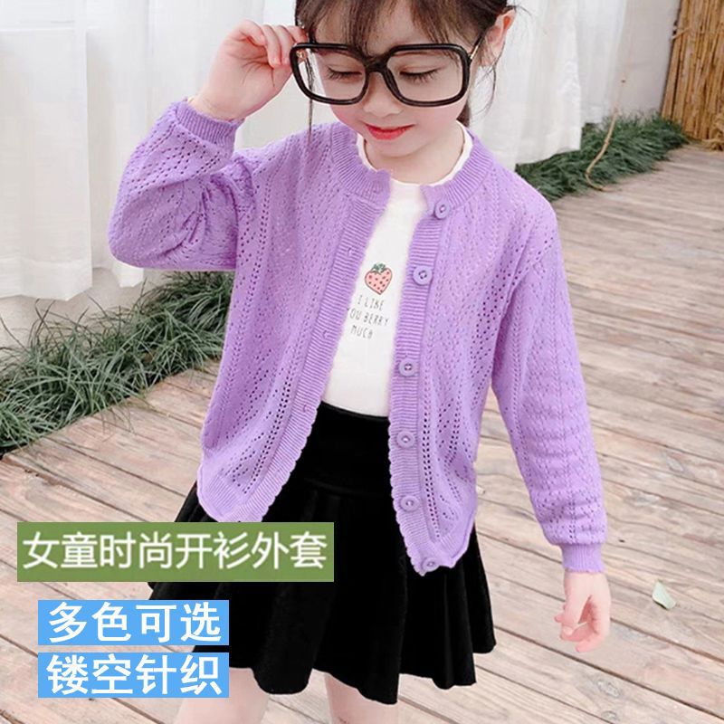 Girls’ Cardigan Sweater Coat Hollow Knitted Sweater Summer Thin Air-conditioning Shirt Baby Foreign-style Children Sunscreen Spring and Autumn