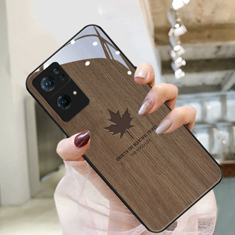 [Imported painted glass] Wood -grain Maple Leaf is suitable for OPPORENO13 mobile phone case Reno12 new Reno11pro net red 10 high -end OPPO minimalist 9 set FindX8 thin fashion set