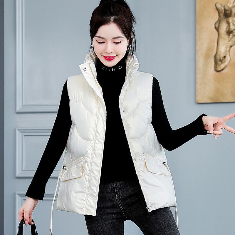 Down cotton vest 2024 autumn and winter new women’s loose wear thick vest bright waistcoat vest jacket