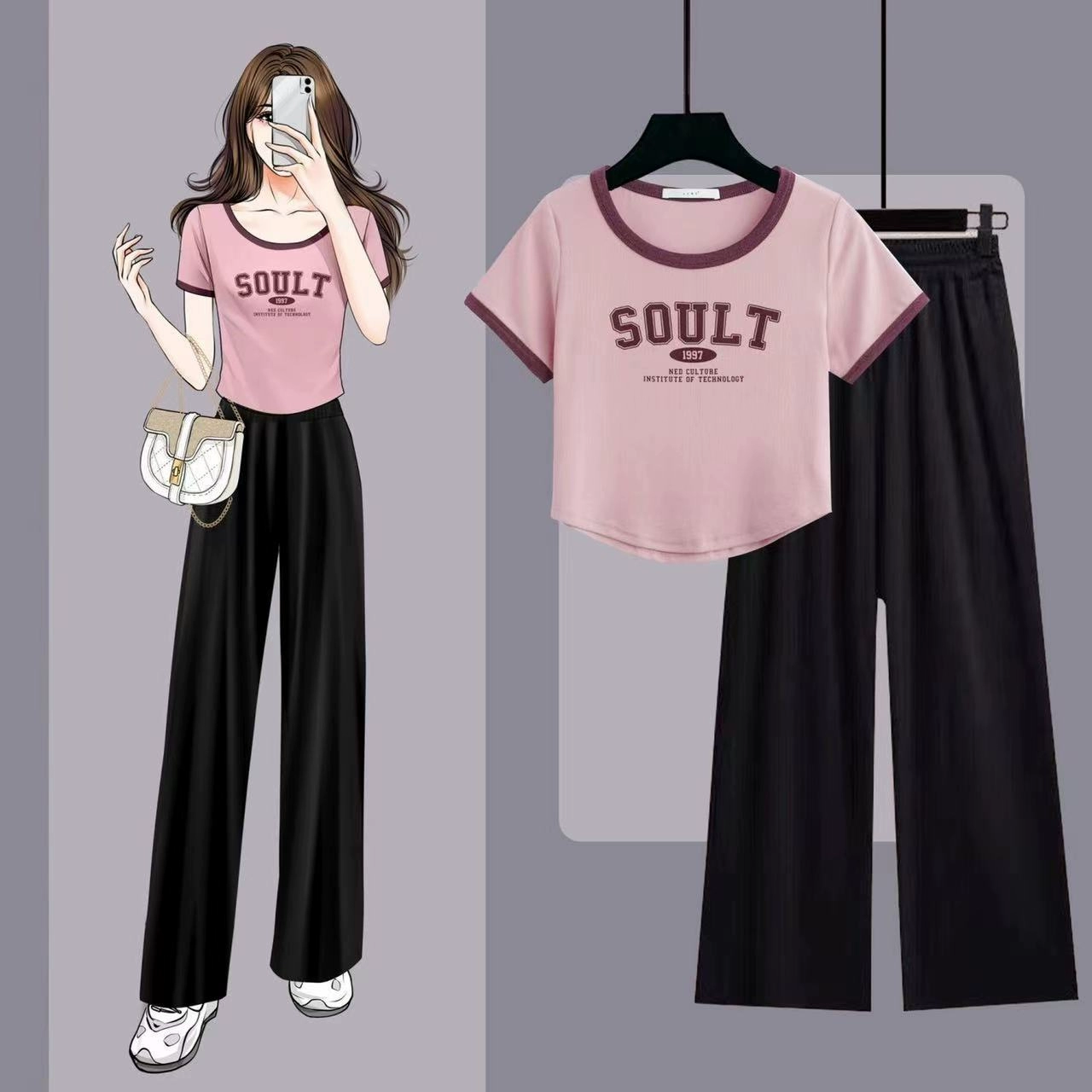 SHEIN Tee and Pants Set with Mock Neck and Flare Leg.