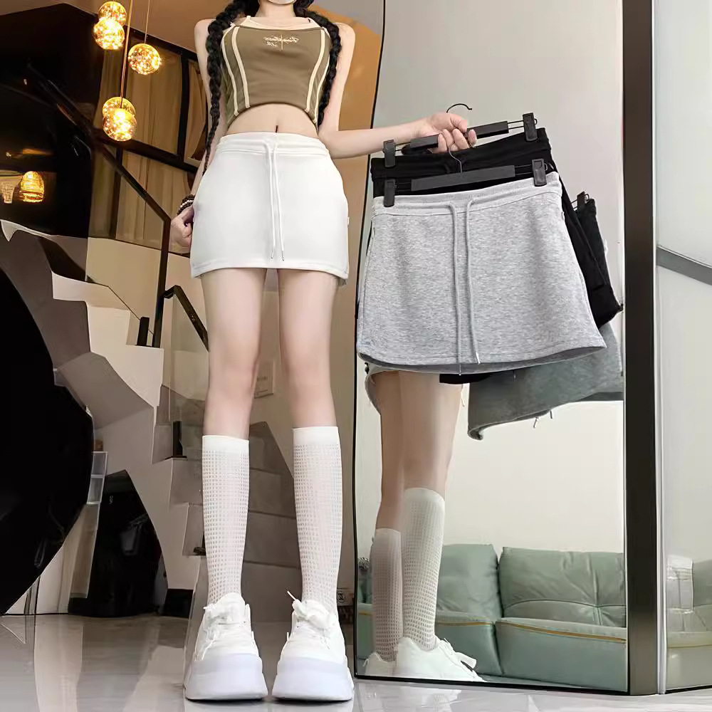 A- line Skirt Gray Sports Skirt Casual Skirt Women’s Summer Overskirt Drawstring Hip Skirt New White Skirt
