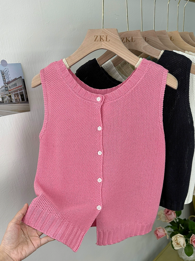 Tianshuang button cardigan niche temperament knitted linen