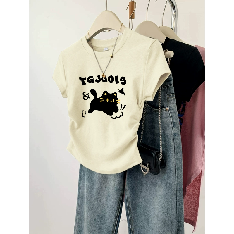 Mint green niche 2024 new slim short -sleeved T -shirt