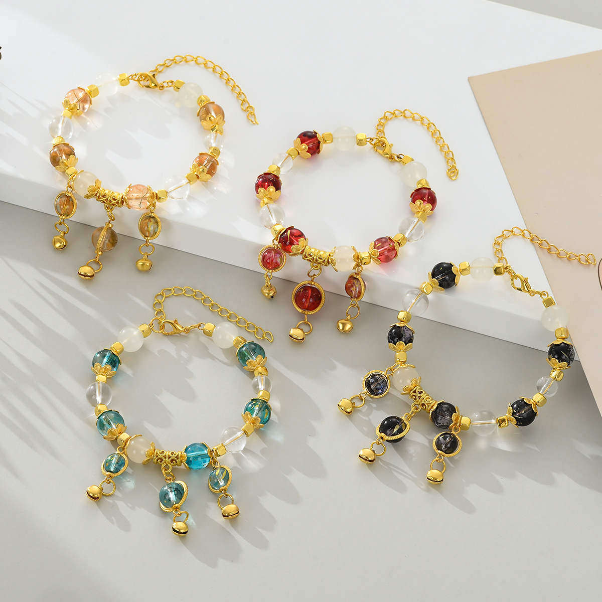 Internet Celebrity Popular Gold Chain Explosion Bead Bracelet High-end Bell Pendant Women’s Bracelet Cross-border Korean Style Hand Jewelry