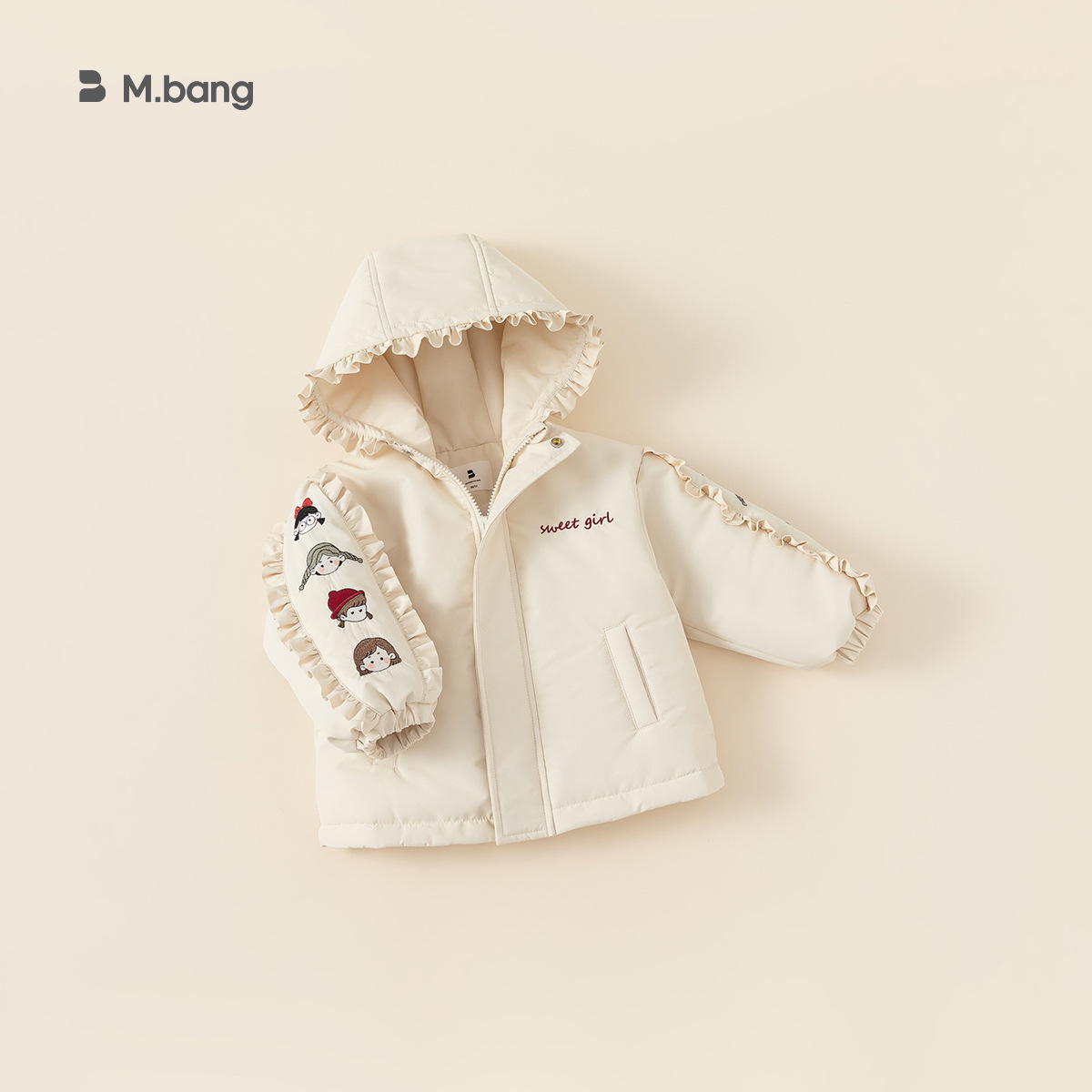 babycity Korean style children’s cotton-padded jacket lace hooded coat winter children’s cartoon embroidered cotton-padded coat DY23203
