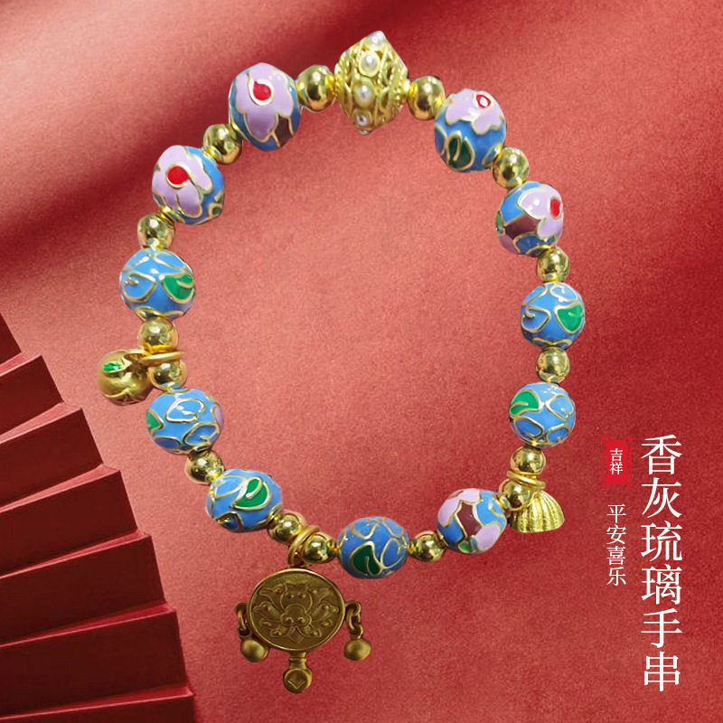 Hot-selling boutique cloisonne cloisonne enamel flower series beaded lucky lucky glass bracelet