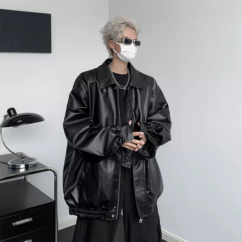 Retro boys locomotive street tide lapel leather jacket