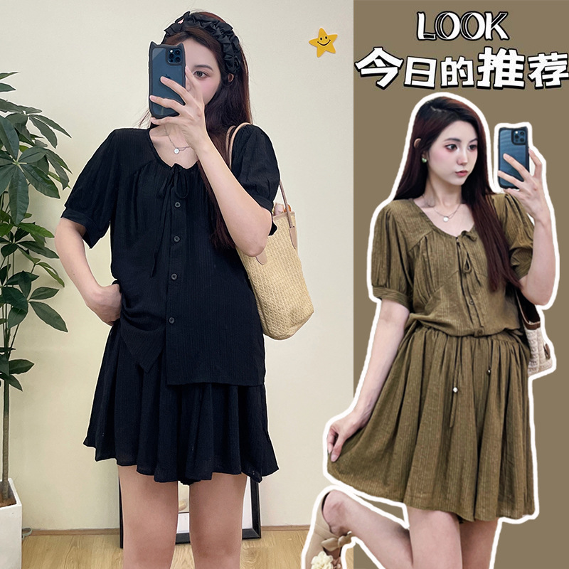 Postpartum Wearing Pregnant Women’s suit 2024 Summer New Fashionable Trendy Mothers Loose Top Slim Wide Leg Pants