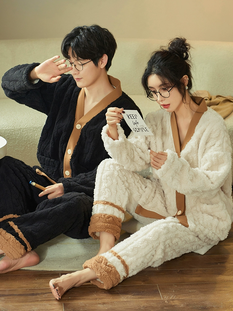 Urban beauty coral velvet couple pajamas Winter women thickened plus velvet men’s autumn and winter home