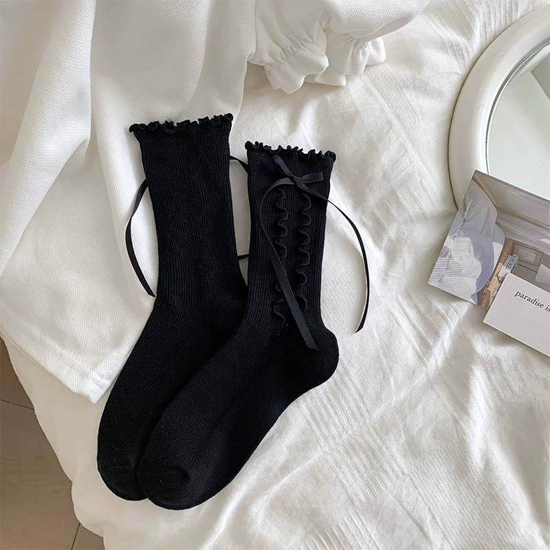 White bow socks Child socks in summer thin Korean version of Japanese girl jk lace pile socks Lolita